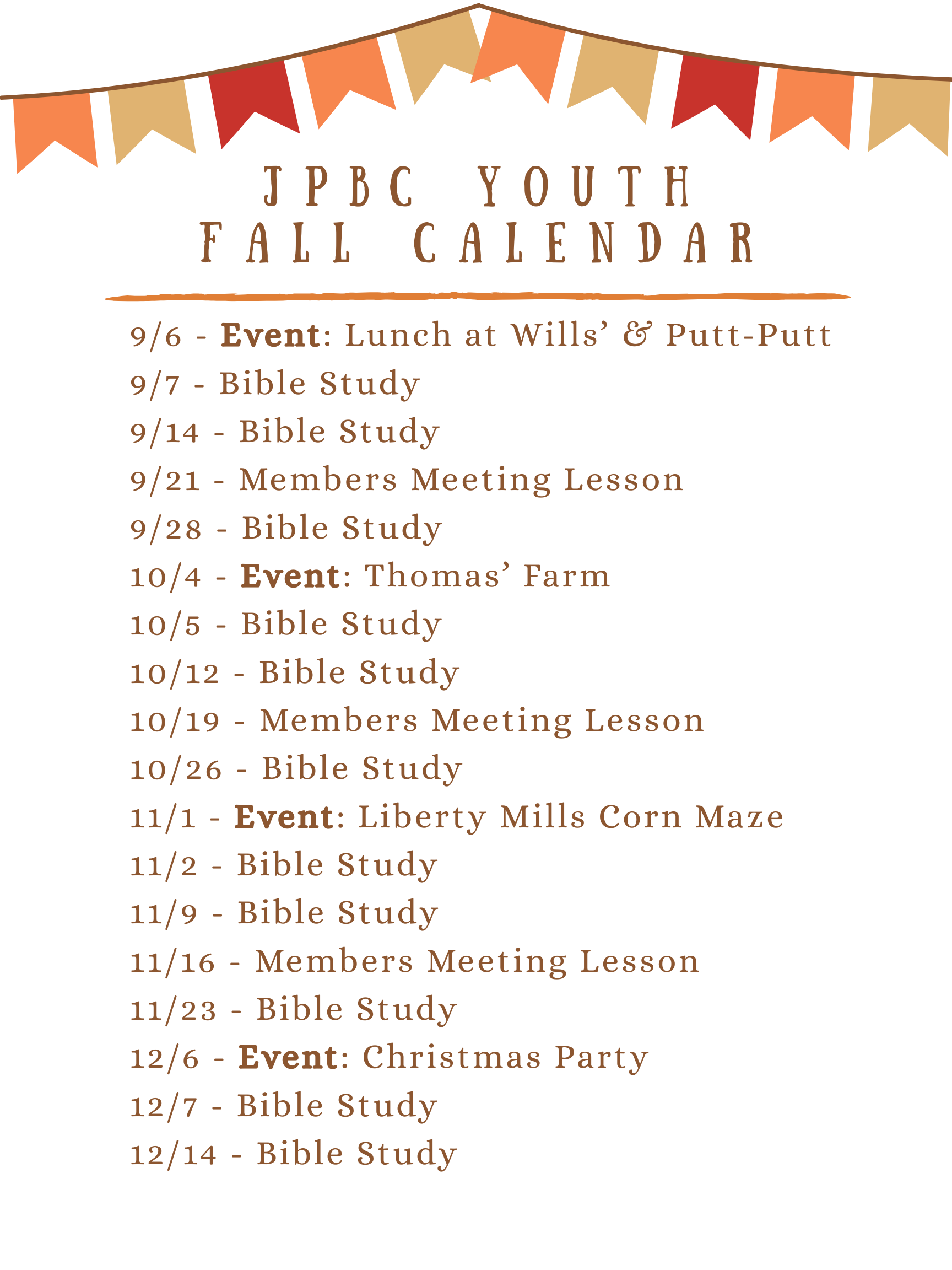 The youth ministry of JPBC serves students in grades 7-12 by striving for faith, friendship, and fun!